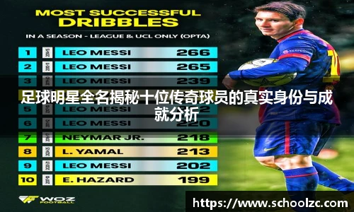 足球作为全球最受欢迎的运动之一,培养出无数传奇球员,他们以卓越的技艺和非凡的成就赢得了球迷们的心。在这篇文章中,我们将揭秘十位足球明星的真实身份与成就,从他们的全名、职业生涯、所获荣誉以及对足球界的影响等多个方面进行分析。这些传奇球员不仅在绿茵场上展现了过人的才华,更在历史长河中留下了不可磨灭的印记...